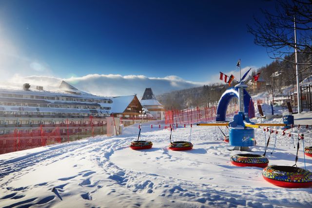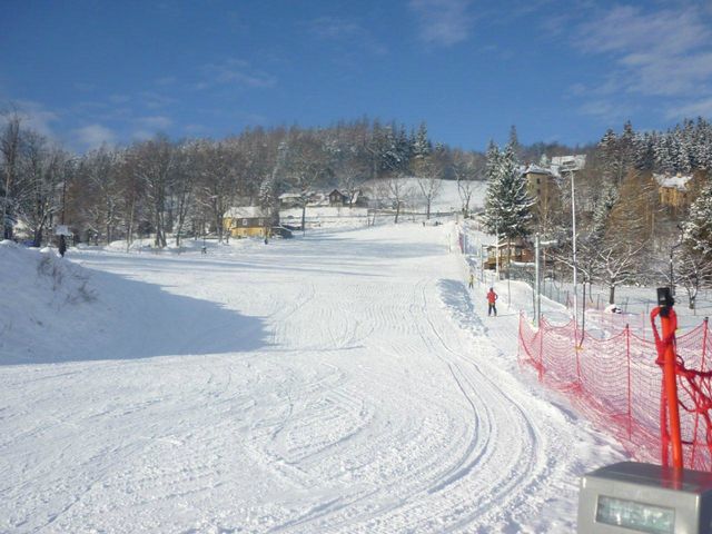 It offers skiers a 400 m long ski slope, which is illuminated and artificially snowed.