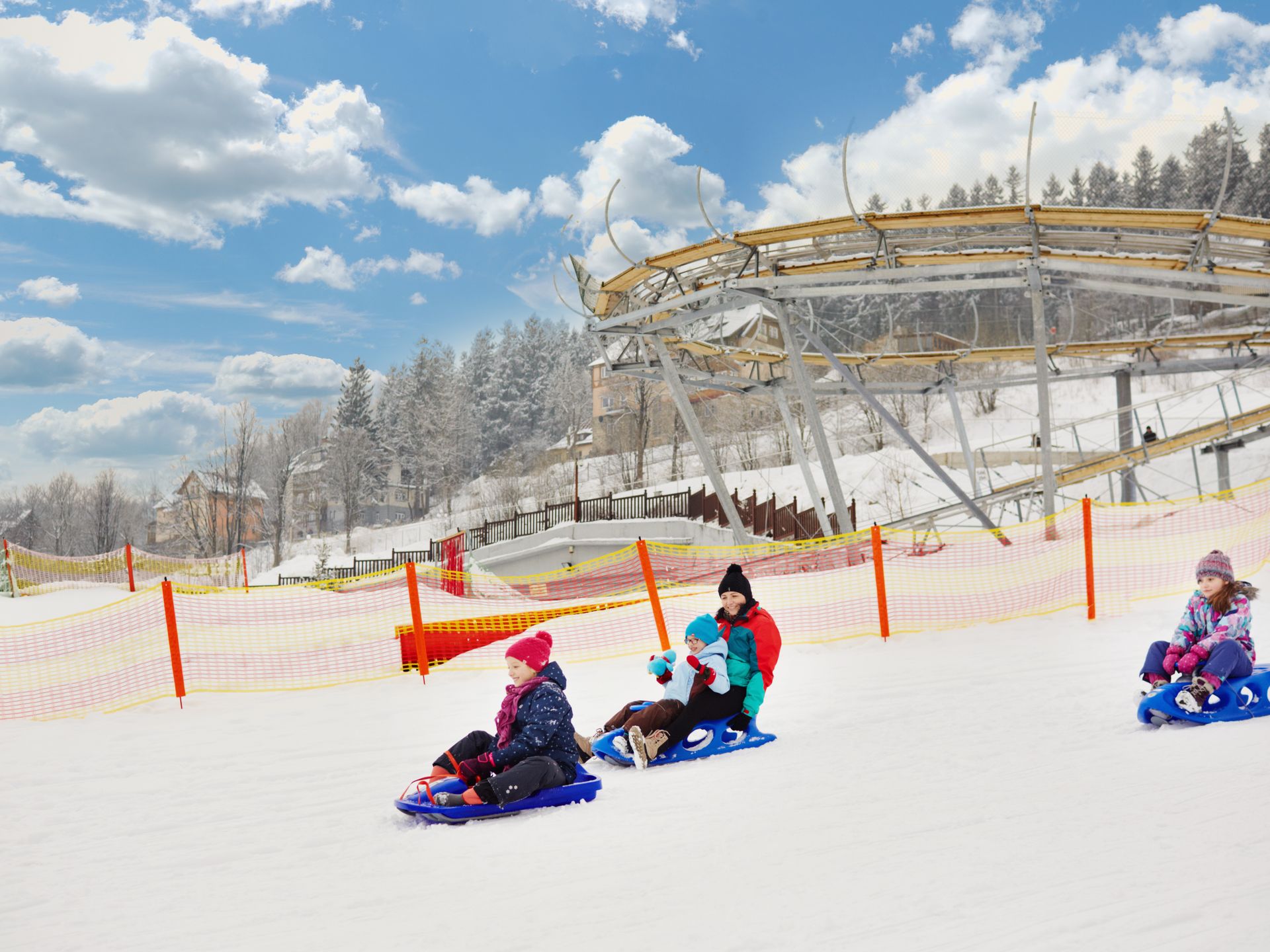 Goście Hotelu Gołębiewski w Karpaczu mogą natomiast cieszyć się zimową zabawą tuż przy hotelu, korzystając z przygotowanego toru pontonowego, który zapewnia ekscytujące ślizgi w komfortowych warunkach.